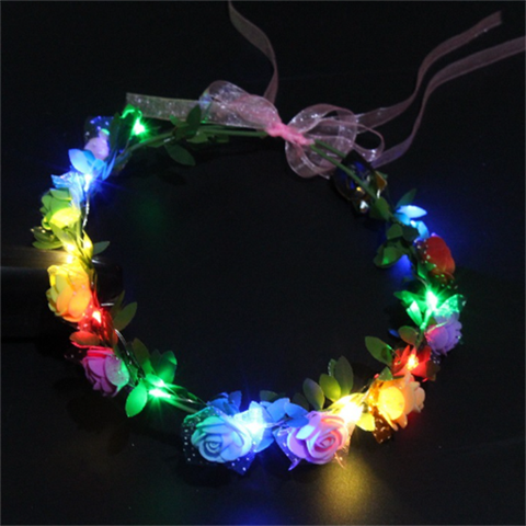 Diadema de flores LED rosa y blanca, guirnalda de flores iluminada, accesorios para el cabello brillantes, coronas de flores, luz de cadena